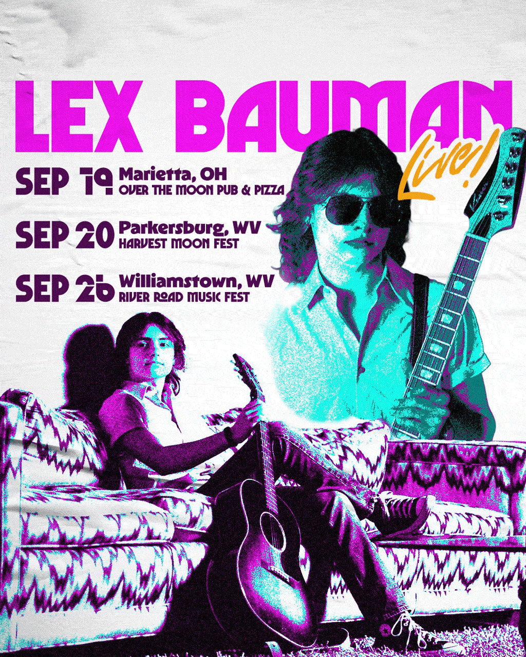 I was brought on board to create the first full-scope brand guidelines for rising rock artist Lex Bauman. The client's main goal was to move away from "80s tribute band" aesthetics and land closer to "modern-retro." With Lex citing Rick Springfield, Cheap Trick and The Cars as major influences while being a young rising artist, it was vital to balance classic rock inspiration with fresh, digital-first design thinking. Vitally, content could not appear stuffy or dated in a way that would be offputting to younger audiences. I crafted a refined style guide that has been executed uniformly across cover artwork and gig flyers in addition to social platforms.